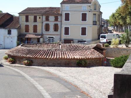 There isn’t much to see in Valence d’Agen, either, although it was funny to walk around the same streets where the market was–it looks completely different. I did spot some folks playing petanque in the Place Nationale, and also walked by this old washing station–the lavoir.