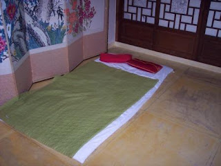 Then, in the very heavy rain, we located the place where I was to stay–a room in a traditional-style house in Jeonju’s Hanok Village. Back in the 70s, everything was traditional, so this sort of place didn’t exist, or rather it wasn’t special. This was fun as a reminder of the old days, although sleeping on a mat on the floor I could probably have done without. Some more pictures below: