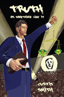 First, the principal antagonist, the billionaire presidential candidate Arthur Lyndon, is truly scary, given this disturbing age of shrill public discourse and deluded, mindless followers of political movements based on lies. The message here is that devotion can be bought, and it doesn’t matter what the truth is. It doesn’t matter that the candidate’s son was a meth freak, and it doesn’t matter that the miracle of his image appearing on the wall where he died is a fraud. It doesn’t matter that the guy’s henchmen will stoop at nothing to protect their leader. The man has stirred up a mob of followers who cannot be reasoned with and who won’t listen—and they remind me of the crazy Tea Partiers who are currently making a lot of noise, at least in my part of the country. The irony is that the fictional campaign’s slogan is “Lyndon = Truth,” and our hero knows that’s nonsense.